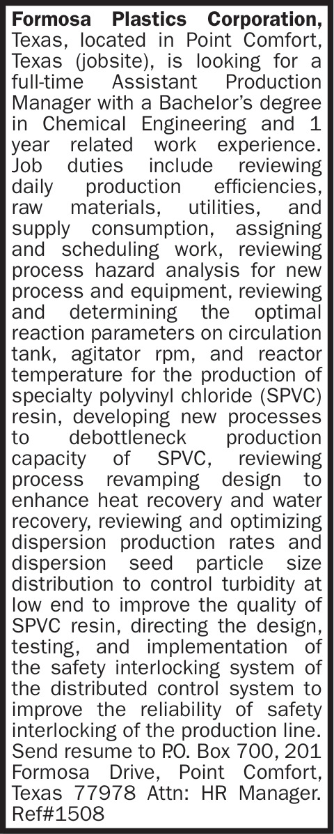 Dec 07, 2025. Formosa Plastics Corporation Jobs from Victoria Advocate Jobs