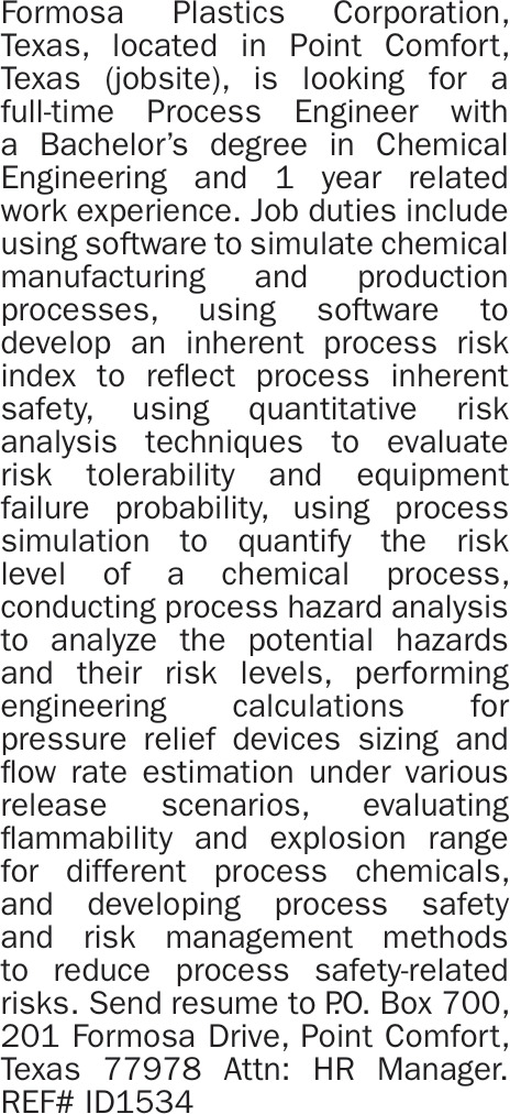 Jan 07, 2026. Formosa Plastics Corporation Jobs from Victoria Advocate Jobs