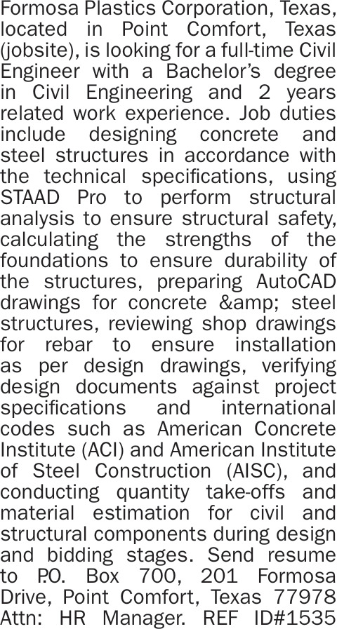 Jan 11, 2026. Formosa Plastics Corporation Jobs from Victoria Advocate Jobs