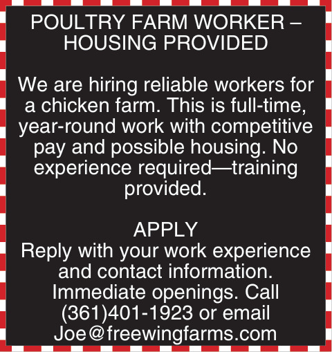Jan 18, 2026. Freewing Farms Jobs from Victoria Advocate Jobs