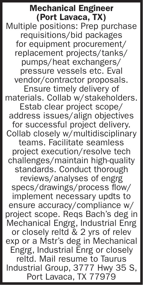 Mechanical Engineer Job Positions in Victoria, TX