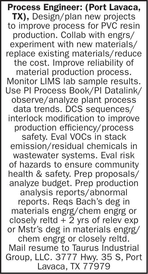 Process Engineer Job Opening in Victoria, TX